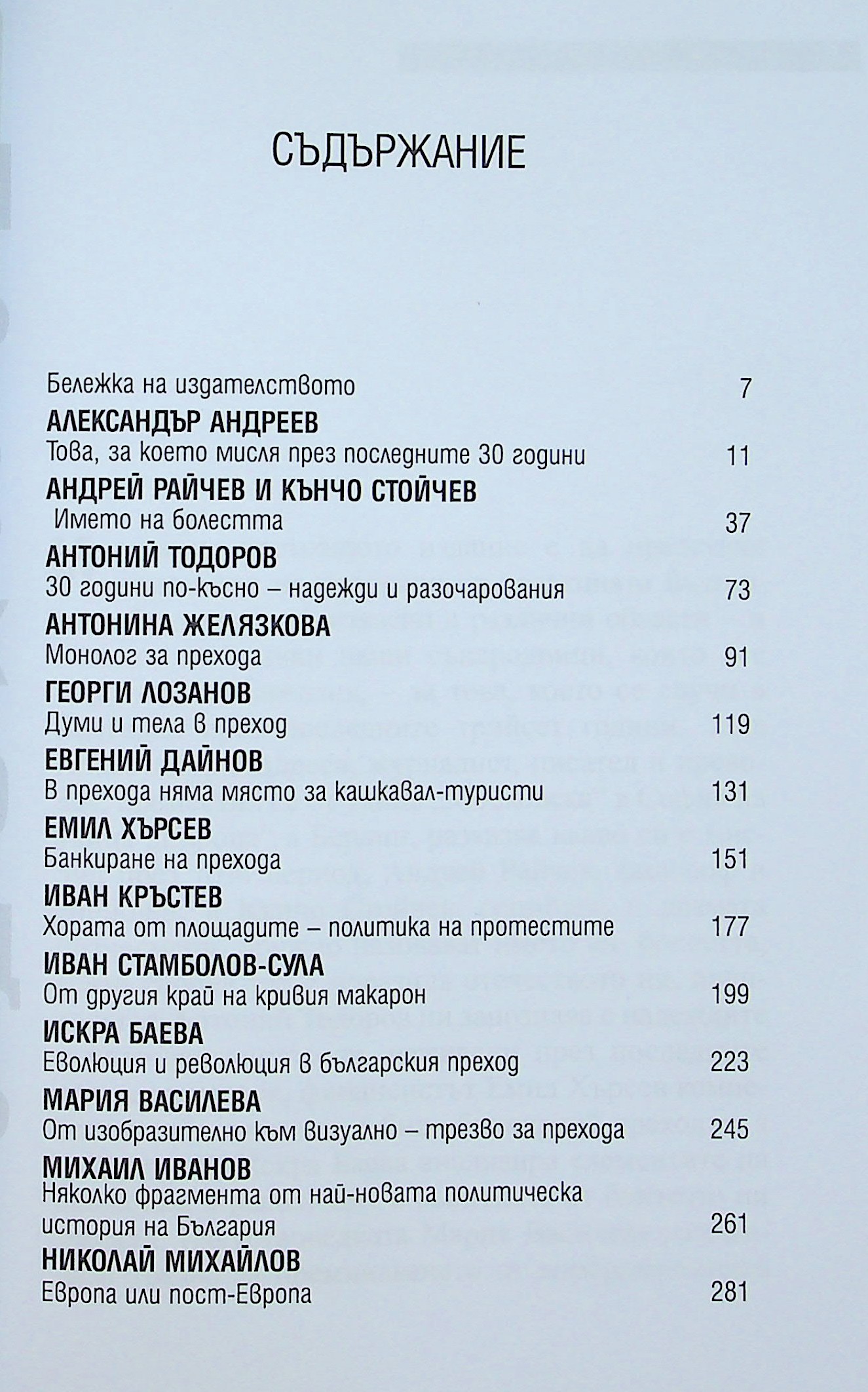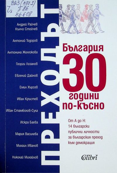 ЦБ 46608 ПРЕХОДЪТ : България 30 години по-късно : [Сб.] / Александър Андреев ; и др. : Колибри, 2019. - 307 с. : с портр., диагр. ; 22 см Др. авт. : Андрей Райчев, Кънчо Стойчев, Антоний Тодоров, Антонина Желязкова, Георги Лозанов, Евгений Дайнов, Емил Хърсев, Иван Кръстев, Иван Стамболов, Искра Баева, Мария Василева, Михаил Иванов, Николай Михайлов. ISBN 978-619-02-0528-9 (Colibri) Сист. N: 154489 |