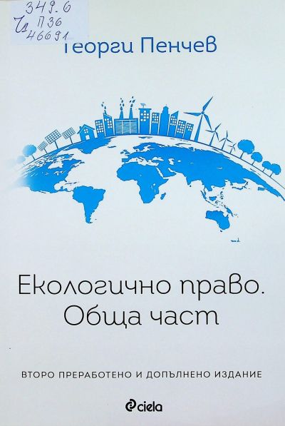 ЦБ 46691 ПЕНЧЕВ, Георги Петров Екологично право. Обща част : [Учебно ръководство] / Георги Пенчев. - 2. прераб. и доп. изд.- София : Ciela, 2019. - 308 с. ; 20 см Биогр. данни за авт. отбелязани на гърба на кор. - Библиогр.: с.281- 295 и под линия ; Рез. и съдърж. на рус. и англ. ез. ISBN 978-954-28-2857-0 (Сиела) Сист. N: 154520 |