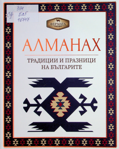 ЦБ 46747 БАНКОВА, Петя и др. Алманах [:] Традиции и празници на българите : [На тв продукцията Фермата] / Петя Банкова, Рачко Попов ; Ил. Росен Найденов, Анна Маринова. - София : Booktrading, 2020. - 368 с. : с ил. ; 24 см Изд. на телевизионната продукция Фермата. - Имената на авт. не са отбелязани на кор. и на загл. с., а на предзагл. с. - Съдържа и Вкусът на баба ; Въпроси от Алманаха ; Отговори. ISBN 978-619-91642-1-1 (Буктрейдинг) Сист. N: 154549 |