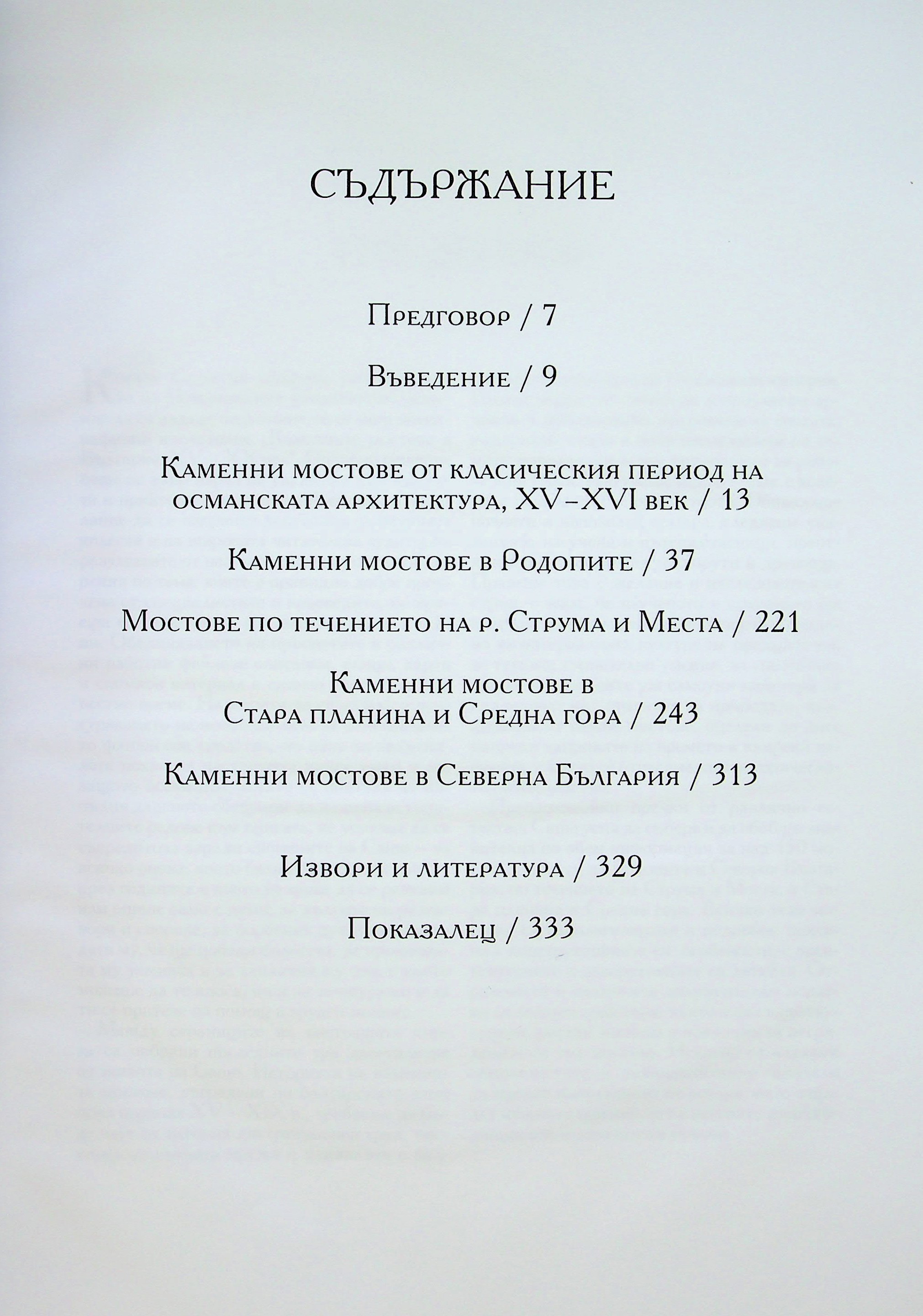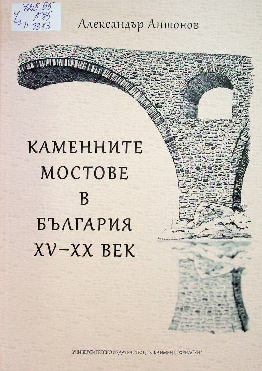 ЦБ II 3383 АНТОНОВ, Александър Атанасов Каменните мостове в България, ХV - XX век = Stone bridges in Bulgaria, 15th-20th century. - Aleksandar Antonov / = Stone bridges in Bulgaria, 15th-20th century / Aleksandar Antonov. - София : Унив. изд. Св. Климент Охридски, 2018. - 340 с. : с ил. ; 29 см Загл. и на англ. ез.: Stone bridges in Bulgaria, 15th-20th century / Alexandar Antonov. - Изд. на СУ "Св. Климент Охридски". Ист. фак. - Биогр. данни на авт. отбелязани на гърба на кор. - Библиогр.: с. 329-331 ; Азб. показалец. ISBN 978-954-07-4144-4 Сист. N: 153169 |
