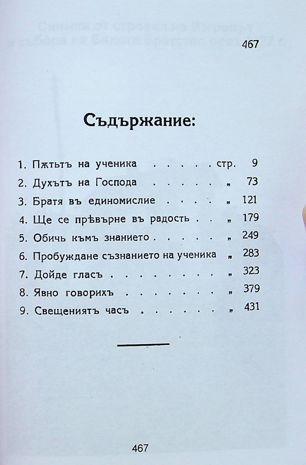 ЦБ I 4120 ДЪНОВ, Петър Константинов Пътят на ученика : Съборни беседи от Учителя дадени на учениците от Всемирното Бяло братство при срещата им в гр. София, на "Изгрева", през лятото 1927 г. / Петър Константинов Дънов ; Дигитална обработка Вихър Ангелов Пенков. - 2. фототип. изд.- Ст. Загора : Група последователи на учението на Учителя Дънов, 2014 (София : печ. Симолини). - 468 с., [8] л. : ил. ; 15 см Беинса Дуно - духовно име на Петър Константинов Дънов. - Загл. и текст на стар правопис. - Кн. е изд. по случай 150 г. от рождението на Учителя 29 юни / 12 юли 1864 г. Сист. N: 154607 |