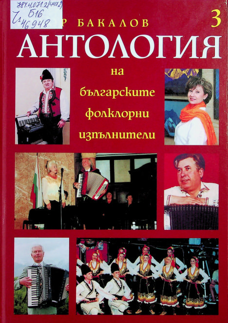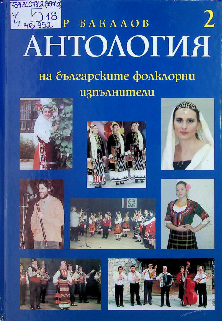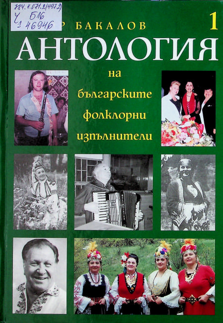 ЦБ 46952 БАКАЛОВ, Тодор Иванов Антология на българските фолклорни изпълнители : Т. 1 - / Тодор Бакалов. - София : Унив. изд. Св. Климент Охридски, 2007 -.- 24 см Т. 2. / Предг. Елена Василиевна-Телпиз : Унив. изд. Св. Климент Охридски, 2008. - 451 с. : с ноти, снимки, портр., 66 л. : снимки, н Съдържа статии за: Стайка Гьокова, Груйчо Дочев, Дико Илиев, Соня Кънчева, оркестър "Хоро" и Васил Първанов, Георги Германов, Олга Борисова, Даниел Спасов, Снежана Борисова, Янка Рупкина, Костадин Варимезов, Сава Попсавов, Калинка Згурова, трио "Зорница", Манол Михайлов, Кунка Желязкова, Галина Дурмушлийска, Бойка Присадова, Владимир Кузов, Любка Рондова, Костадин Гугов, Стоян Борисов, Благовест Порожанов, Ирина Трачева, Георги Фершелов, Петкана Захариева, Михаил Делчев, Ивелина Балчева, Илия Луков, Борис Карлов, Мишо Гюров, Иван Шибилев, Ибро Лолов, Иван Кирев, Емил Колев, Трайчо Синапов, Димитър Пасков-Тигъра, Димитър Стойков, Петко Дачев, Иван Милев, Нешко Нешев, Петър Ралчев, Стоян Дечев, Михаил Бъжев, Митко Иванов, Михаил Букурещлиев, Добрин Коев, Владимир Владимиров, Теодосий Спасов, Асен Диамандиев. ISBN 978-954-07-2653-3 (том 2) Сист. N: 154620 |