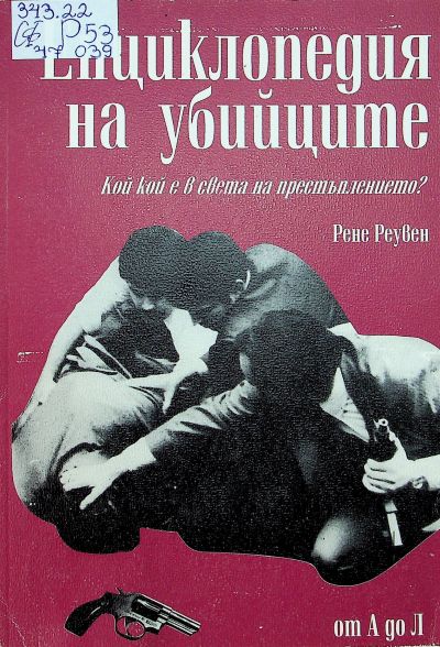 ЦБ 47039 РЕУВЕН, Рене Енциклопедия на убийците : [Кой кой е в света на престъплението?] : Т. 1 - 2 / . - Прераб. и доп. изд.- София : Савана, 1993.- 24 см Т. 1. От А до Л / : Савана. - 240 с. Името на прев. е отбелязано на гърба на загл. с. - Именен показалец: с. 237-239. ISBN 954-8226-13-8 (т. 1) Сист. N: 153463 |