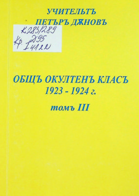 ЦБ I 4122 ДЪНОВ, Петър Константинов Окултни лекции дадени на учениците на Всемирното Бяло братство : Общ окултен клас : III г., София, 1923-1924 г. : Т. 3. / Учителят Петър Дънов. - Фототип. изд.- Ст. Загора : Кота, 2020. - 352 с. ; 16 см Загл. и текст на стар правопис, На кор.: Общ окултен клас 1923-1924 г. ; т. III. ISBN 978-954-305-532-6 Сист. N: 154608 |