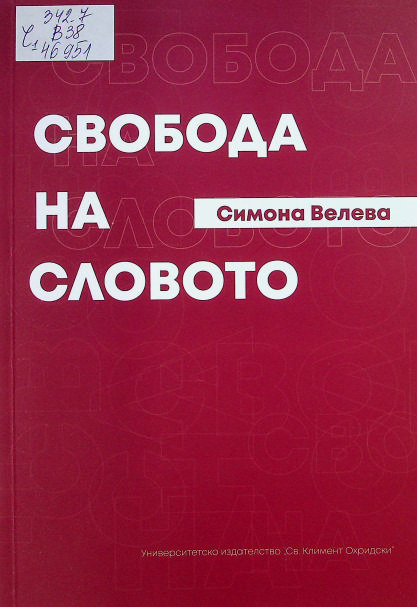 ЦБ 46951 ВЕЛЕВА, Симона Свобода на словото / Симона Велева ; Рец. Георги Близнашки, Райна Николова, Бойка Чернева. - София : Унив. изд. Св. Климент Охридски, 2020. - 333 с. ; 24 см Библиогр.: с. 313-331 и под линия. ISBN 978-954-07-4889-4 Сист. N: 154621 |