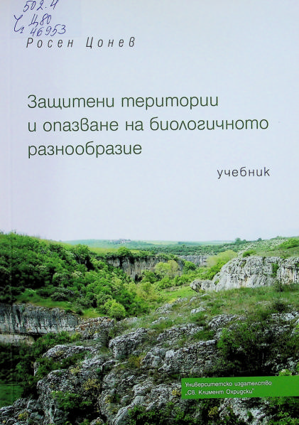 ЦБ 46953 ЦОНЕВ, Росен Тодоров Защитени територии и опазване на биологичното разнообразие : [Учебник] / Росен Цонев ; Рец. Петър Желев. - София : Унив. изд. Св. Климент Охридски, 2020. - 359 с. : с цв. ил. ; 24 см Биогр. данни за авт. отбелязани на гърба на кор.- Библиогр. след отд. теми. ISBN 978-954-07-4923-5 Сист. N: 154622 |