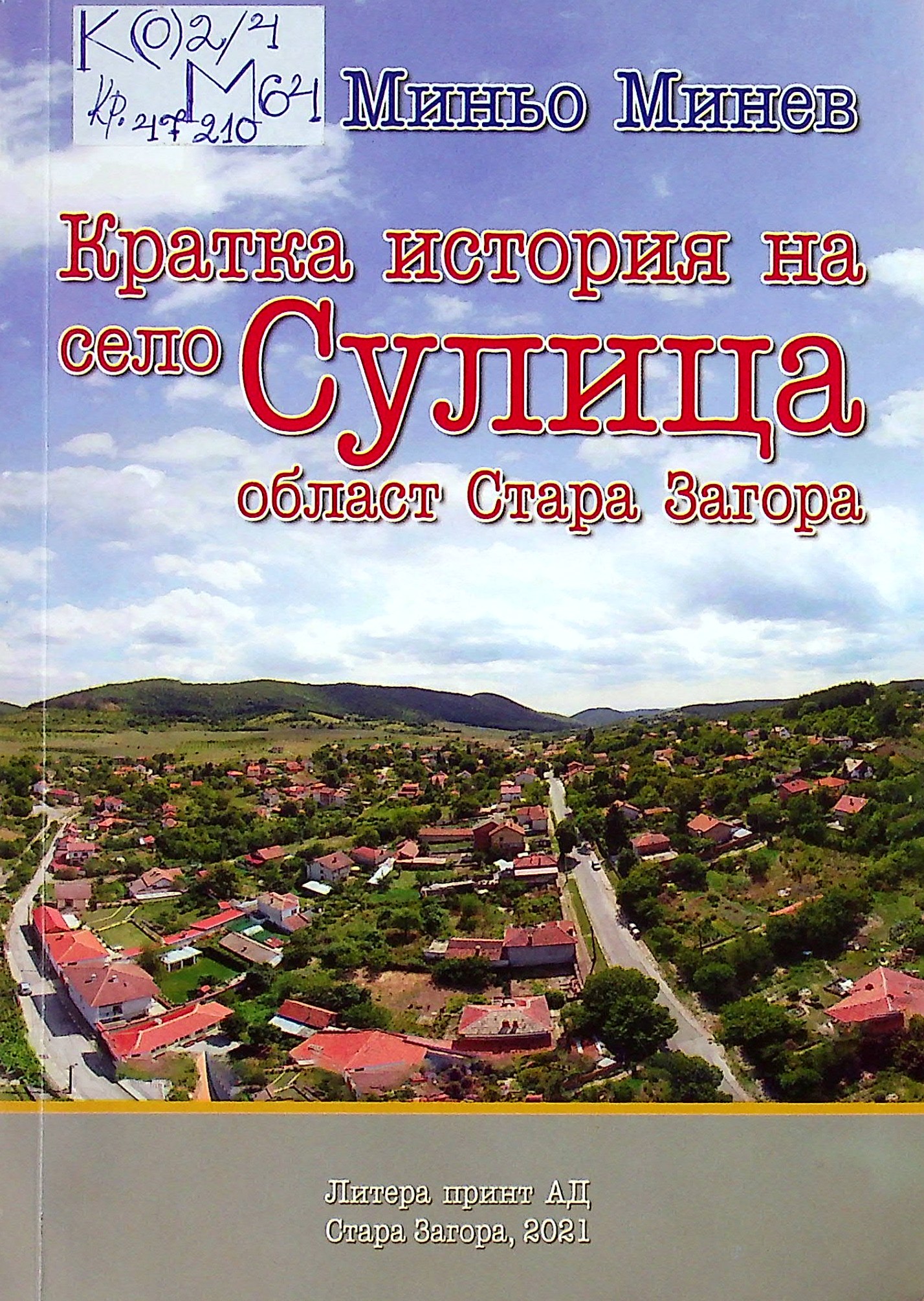 ЦБ 47210 МИНЕВ, Миньо Дончев Кратка история на село Сулица, област Стара Загора / . - Ст. Загора : Литера принт, 2021 (Ст. Загора : печ. Литера принт). - 128 с. : със снимки, някои цв. ; 20 см Автобиогр. и библиогр. данни за авт.: с. 76-77. ISBN 978-954-487-176-5 Сист. N: 154269 |