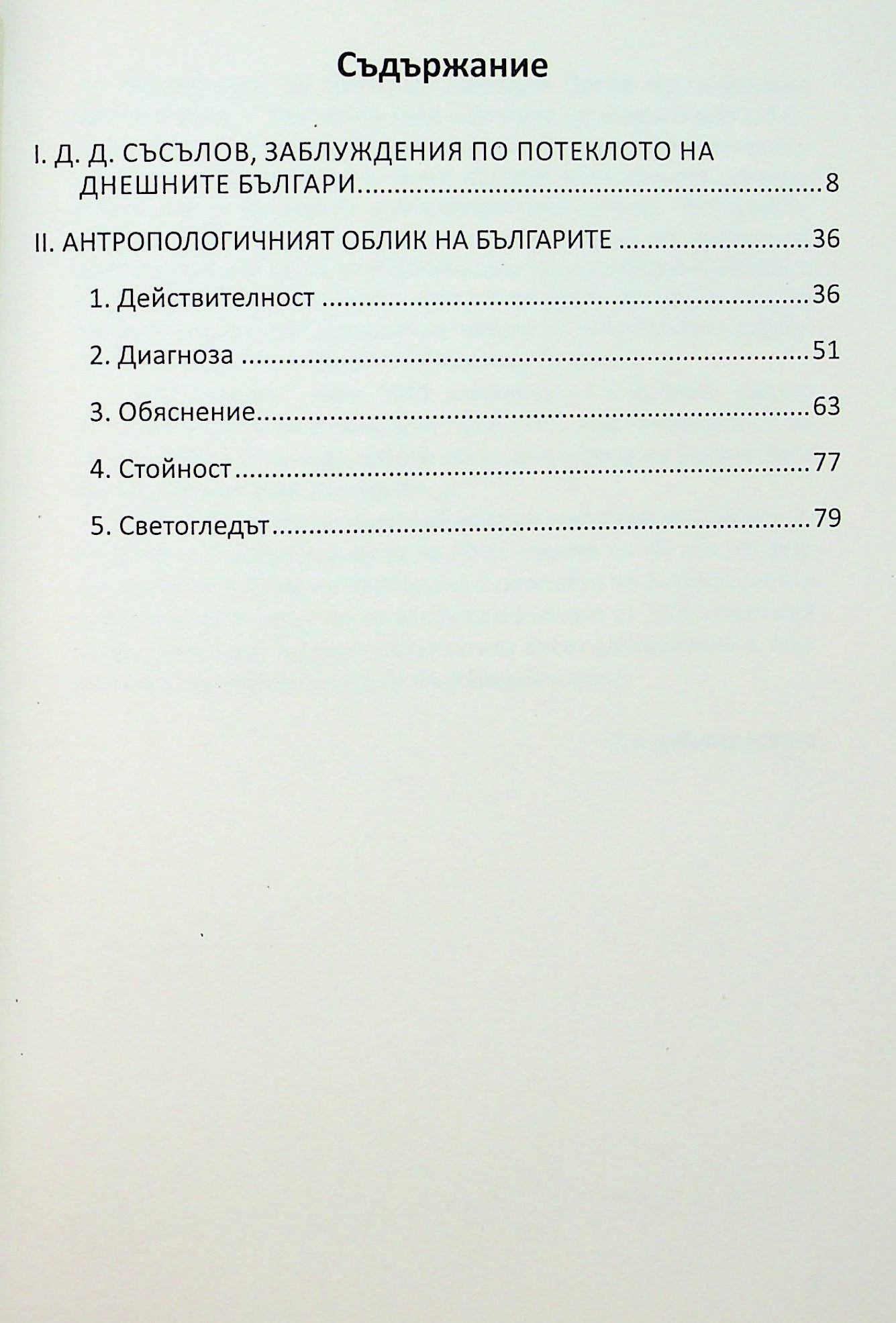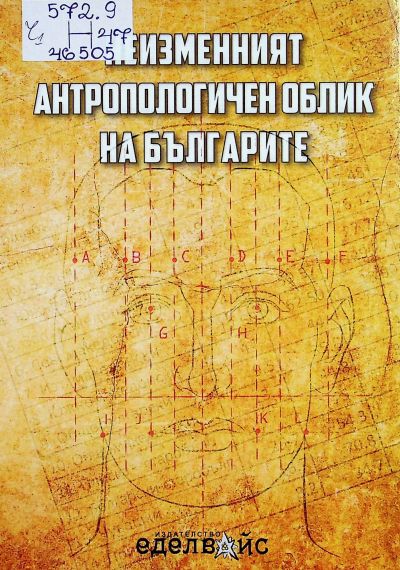 ЦБ 46505 НЕИЗМЕННИЯТ антропологичен облик на българите : [Изследване за произхода на днешните българи]. - София : Еделвайс, 2014. - 82 с. : с табл. ; 20 см Съдържа и: Заблуждения по потеклото на днешните българи / Димитър Д. Съсълов: с. 8-35. ISBN 978-619-7186-04-8 Сист. N: 154447 |