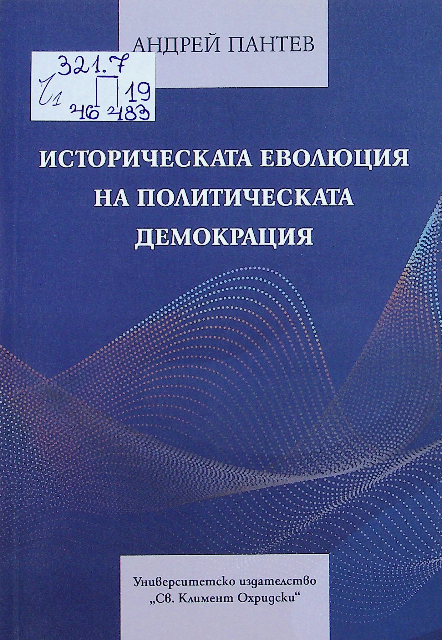 ЦБ 46483 ПАНТЕВ, Андрей Лазаров Историческата еволюция на политическата демокрация / Андрей Пантев ; С предг. от авт. - 2. изд.- София : Унив. изд. Св. Климент Охридски, 2019. - 300 с. ; 20 см Съдържа и: Препоръчителна лит.: с. 291-299. ISBN 978-954-07-4540-4 Сист. N: 154437 |