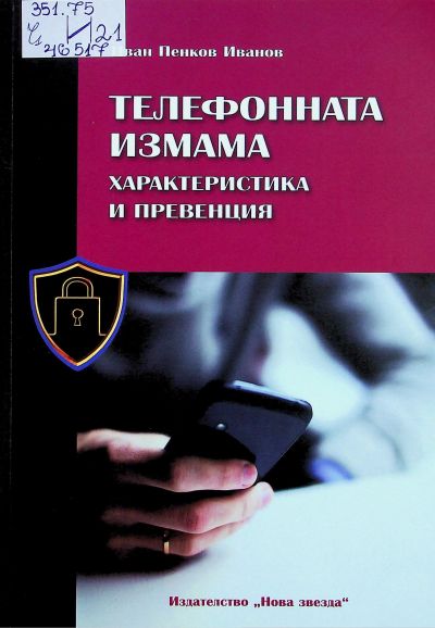 ЦБ 46517 ИВАНОВ, Иван Пенков Телефонната измама - характеристика и превенция : [Моногр. изследване] / Иван Пенков Иванов ; Увод от авт. - София : Нова звезда, 2020. - 184 с. : с табл., диагр. ; 24 см Библиогр.: с. 180-184 и под линия. ISBN 978-619-198-130-4 Сист. N: 154458 |