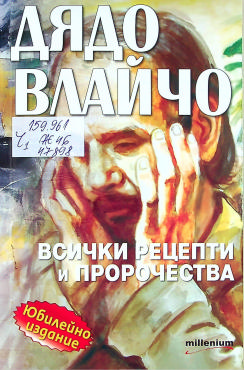 ЦБ 47898 ДЯДО Влайчо : Всички рецепти и пророчества : Юбилейно изд. / Подб. и състав. Яна Борисова. - София : Millenium, 2021. - 176 с.: с ил. ; 20 см Името на състав. отбелязано на гърба на предзагл. с. - Пълното име на Дядо Влайчо е Влайо Жечев. - Юбил. изд. - Библиогр. с.: 173. ISBN 978-954-515-565-9 (Милениум) Сист. N: 157904 |